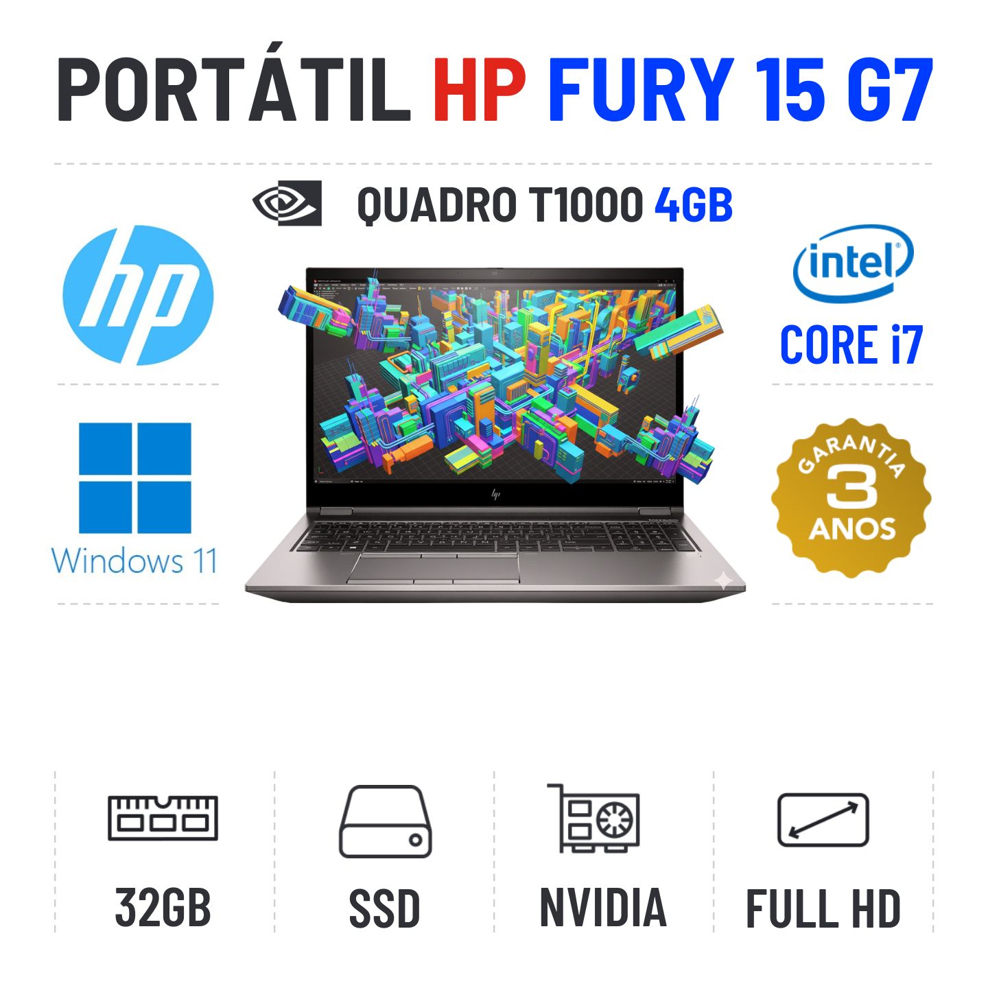 HP ZBOOK FURY 15 G7 | 15.6" FULLHD | i7-10750H | 32GB RAM | 240GB SSD | QUADRO T1000 4GBEstado Grau A. Sem qualquer tipo de danos. Somente com ligeiros indicios de uso