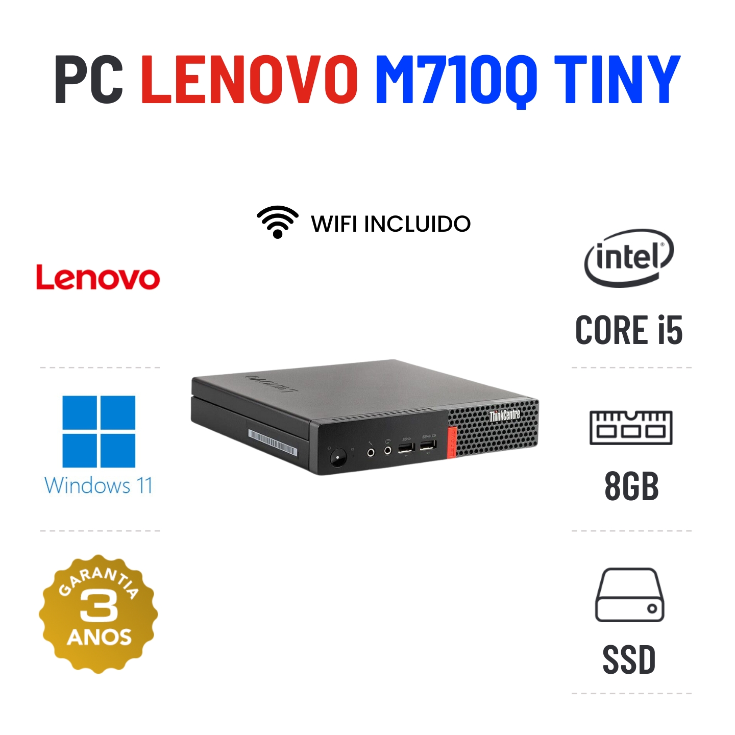 LENOVO THINKCENTRE M710Q MINI | i5-6500T | 8GB RAM | SSDEstado Grau A. Sem qualquer tipo de danos. Somente com ligeiros indicios de uso