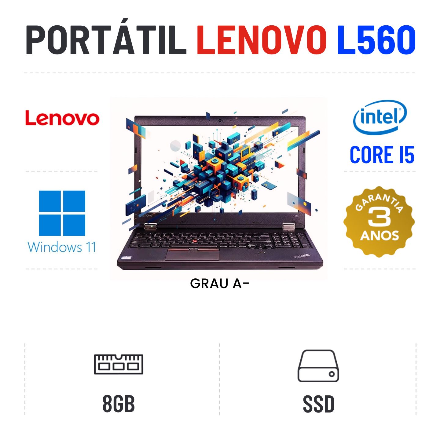 LENOVO THINKPAD L560 | 15.6" | i5-6200U | 8GB RAM | 240GB SSDGrau A menos - Apontamentos estéticos ligeiros - 100% funcional