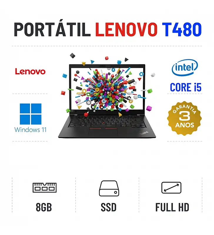 A tecnologia incluída, da qual destacamos o disco SSD ultra rápido o processador Intel i5 de Oitava geração e os 8GB de memória RAM, faz com que o T480 responda eficazmente às mais variadas exigências de trabalho, em diversas aplicações.