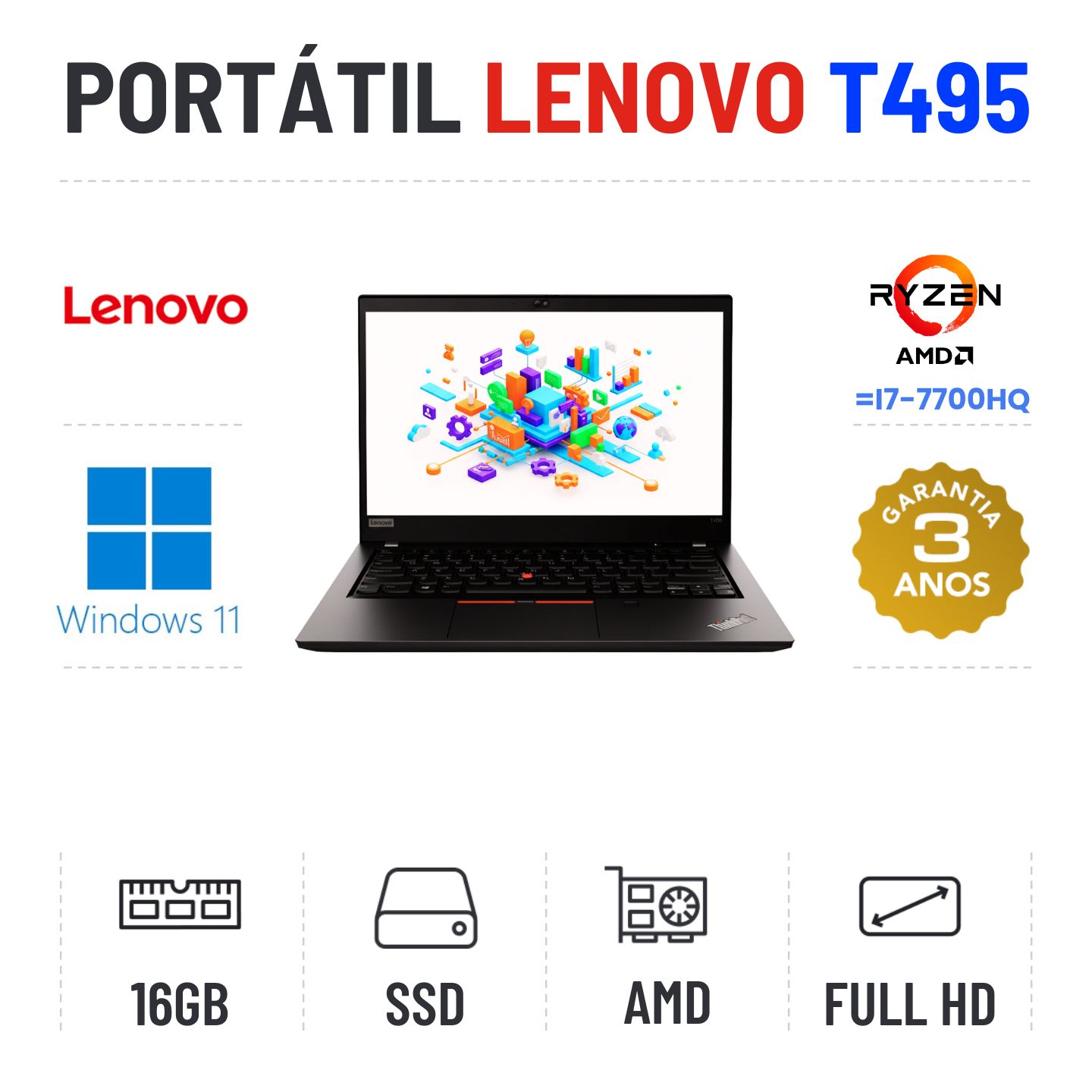 LENOVO THINKPAD T495 | 14.1'' FULLHD | RYZEN 5 PRO 3500U=I7-7700HQ | 16GB RAM | 480GB SSD | RADEON VEGA 8Estado Grau A. Sem qualquer tipo de danos. Somente com ligeiros indicios de uso