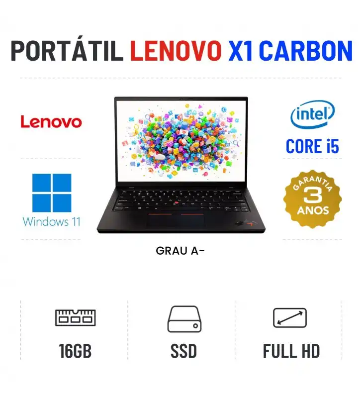 LENOVO X1 CARBON G9 | 14" FULLHD | i5-1135G7 | 16GB RAM | 240GB SSD | OFERTA DE OFFICE 2021Grau A menos - Funciona como Novo. Apontamentos estéticos ligeiros - ver fotos- 100% funcional. Preço comparado com novo