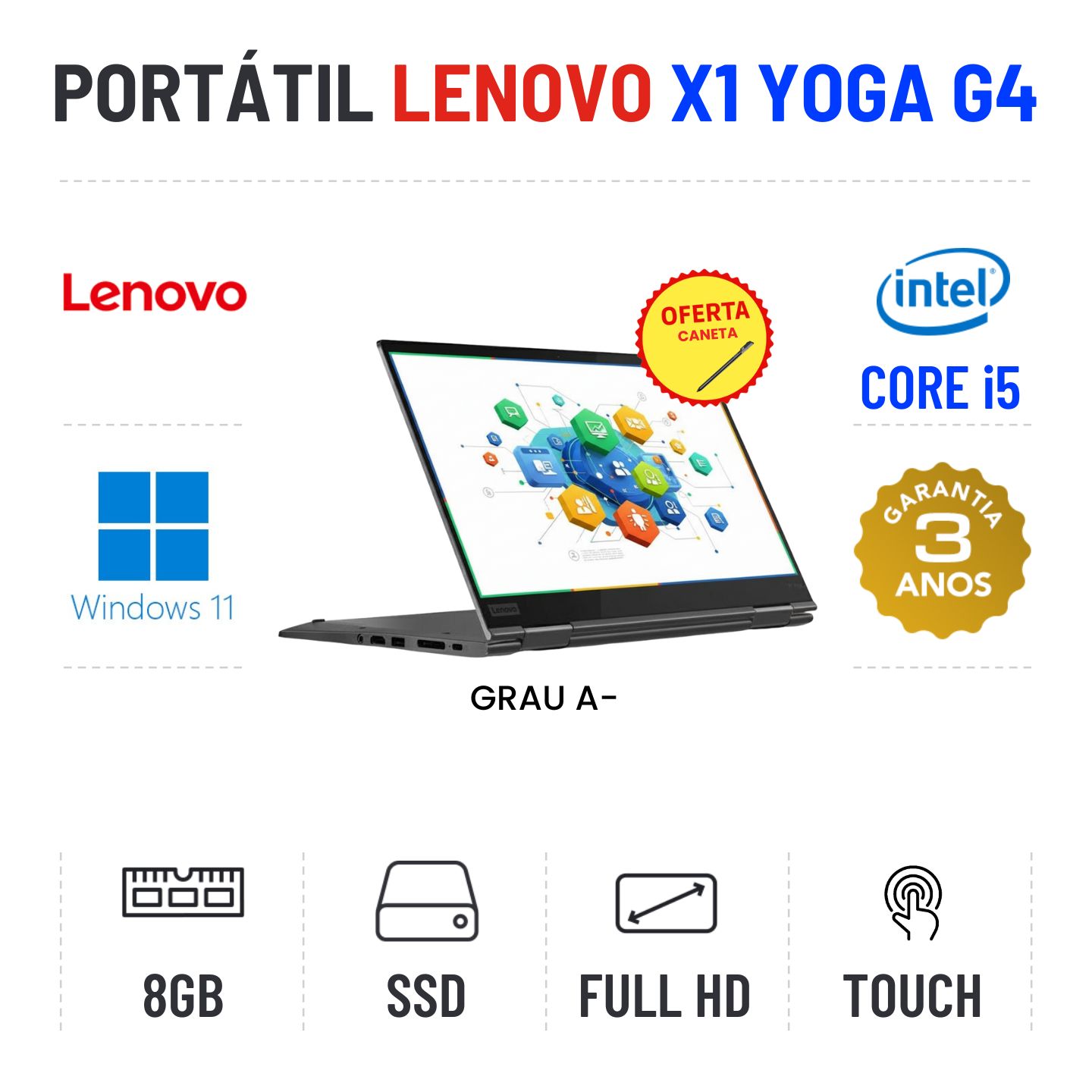 LENOVO X1 YOGA G4 | 14" TOUCH FULLHD | I5-8265u | 8GB RAM | 240GB SSD | OFERTA CANETAGrau A menos - Apontamentos estéticos ligeiros - 100% funcional
