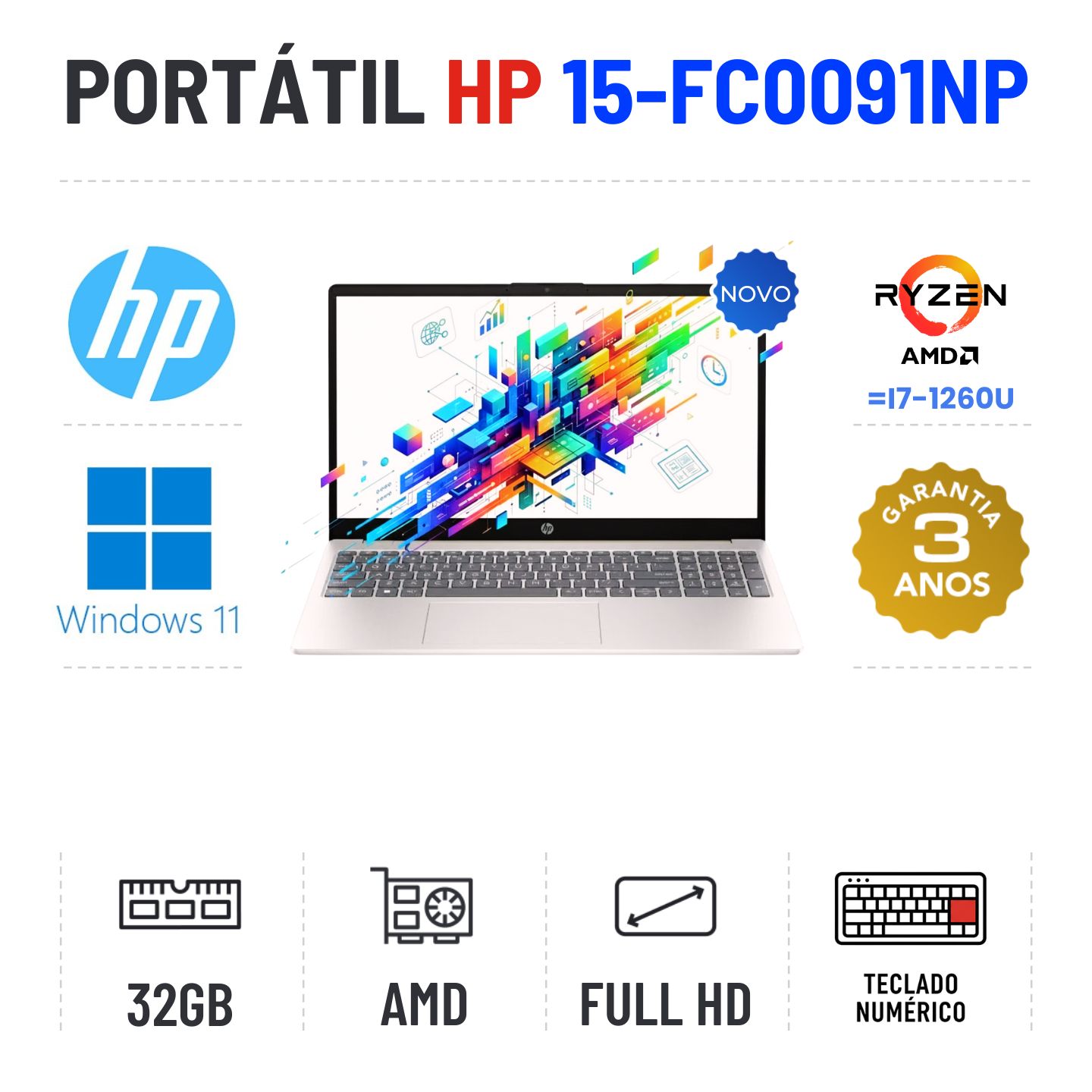 NOVO - HP 15-FC0091NP | 15.6'' FULLHD | RYZEN 7 = i7-1260P | 32GB RAM | 960GB SSD | TECLADO NUMÉRICONovo com 3 Anos de Garantia