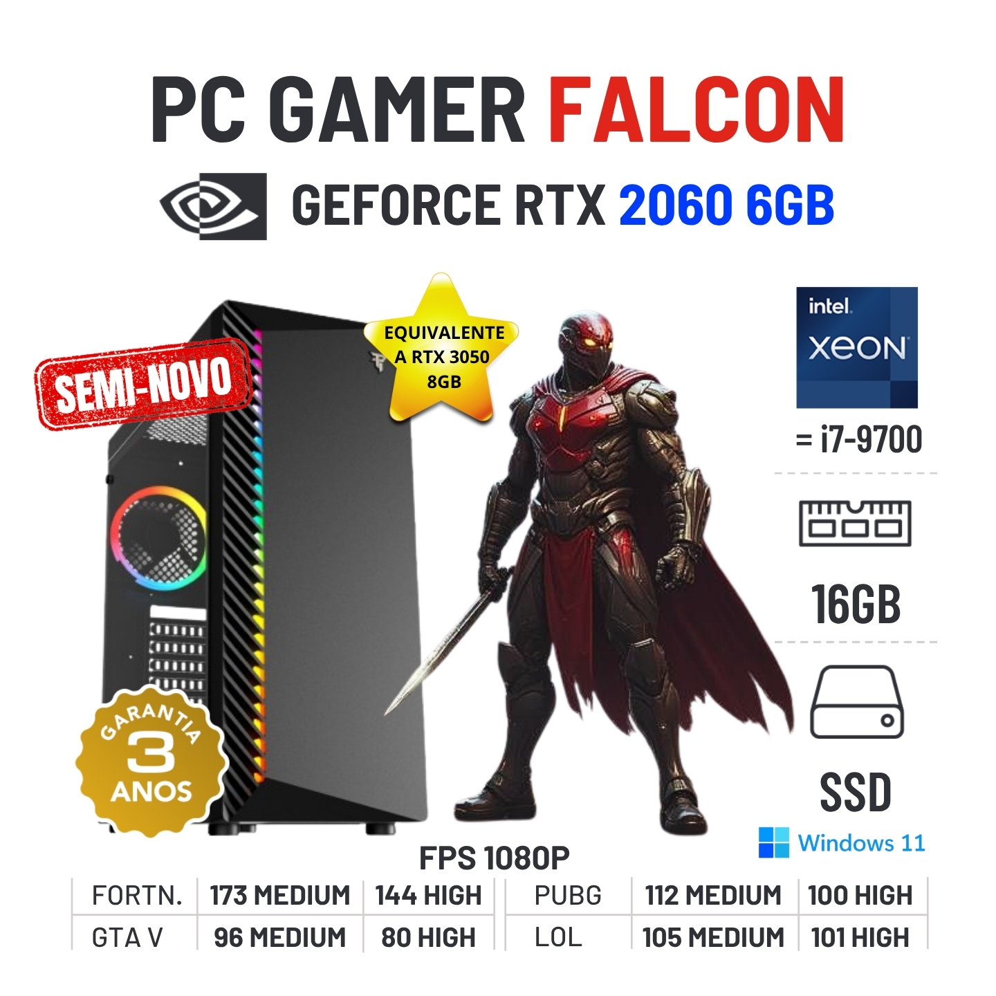 PC GAMER FALCON SEMI-NOVO | RTX2060-6GB SUPERIOR A RTX3050-8GB | XEON 10 CORES SUPERIOR i7-9700 | 16GB RAM | 960GB SSD