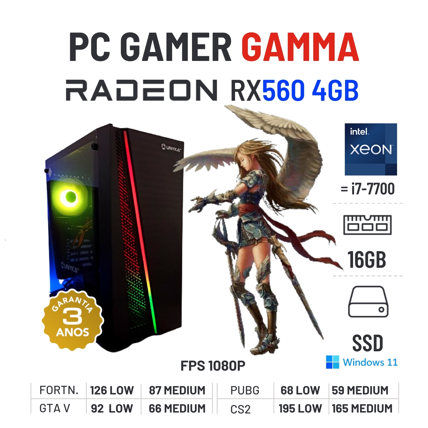 PC GAMER GAMMA | RX560-4GB | XEON=I7-7700 | 16GB RAM | 240GB SSD