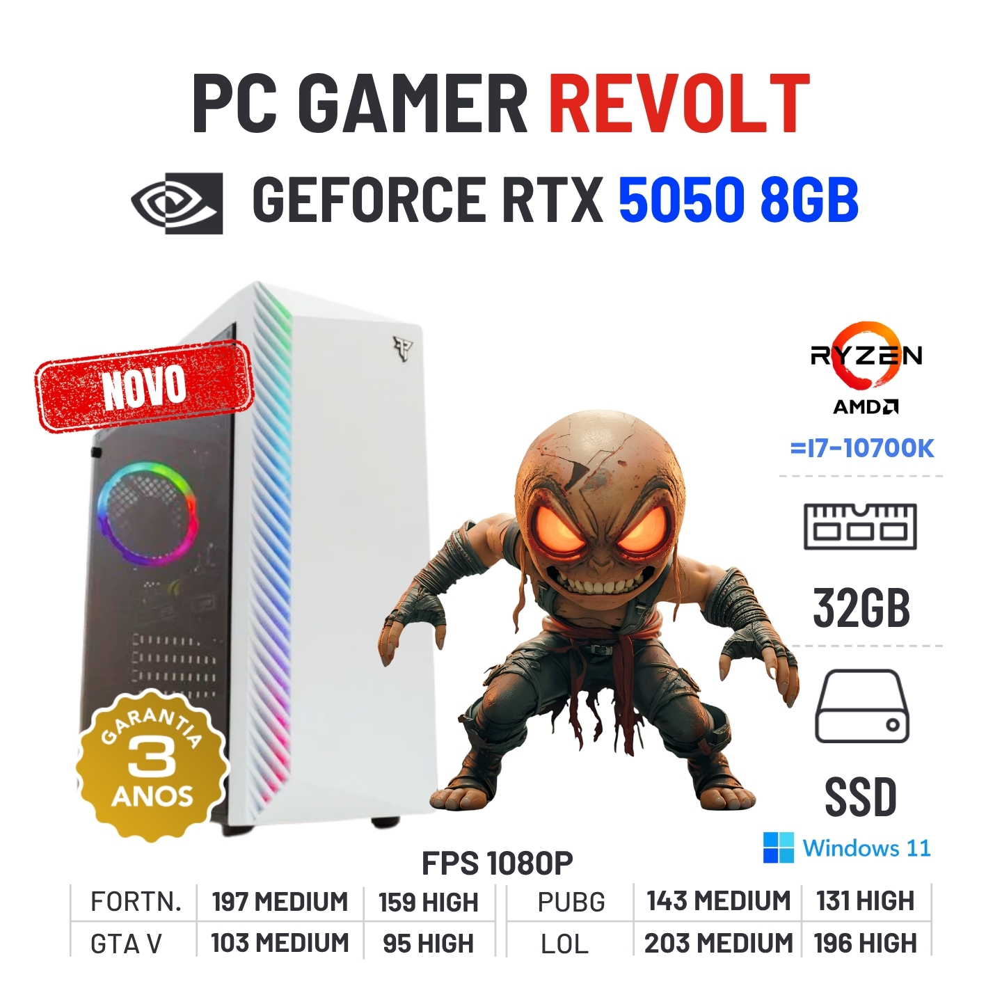 PC GAMER REVOLT NOVO | RTX5050-8GB | RYZEN 5 = i7-10700K | 32GB RAM | 960GB SSDNovo com 3 Anos de Garantia