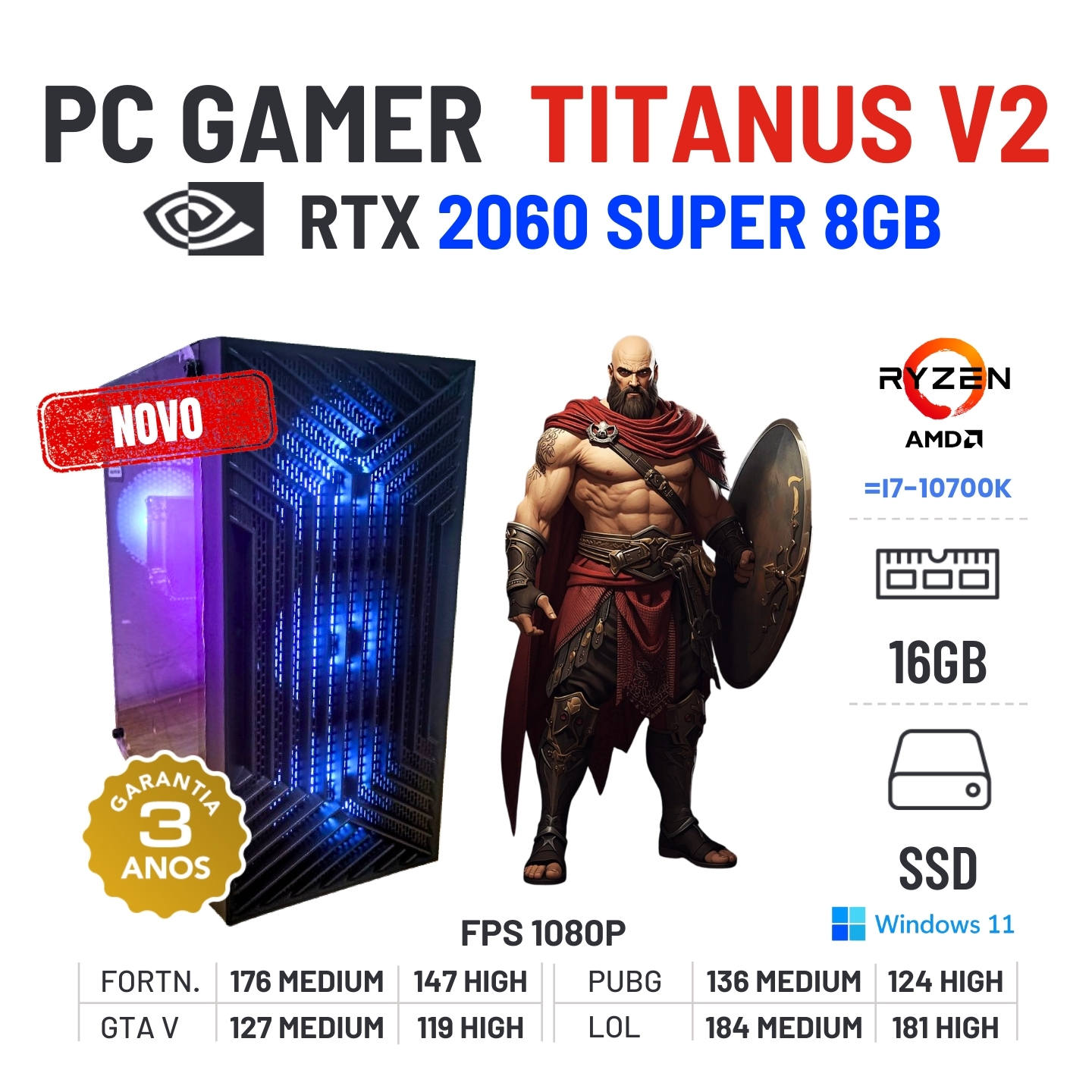 PC GAMER TITANUS V2 NOVO | RTX2060SUPER-8GB | RYZEN 5 = i7-10700K | 16GB RAM | 480GB SSD