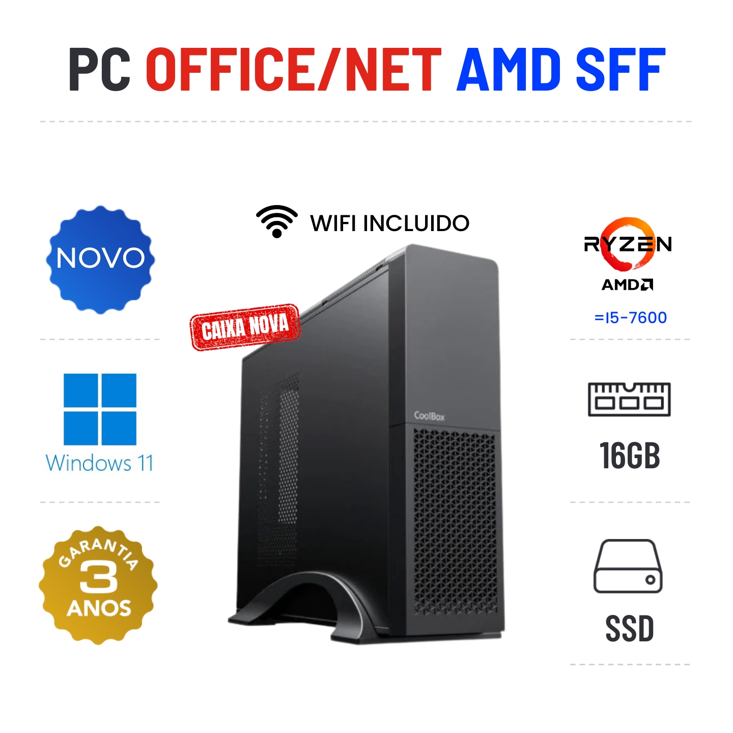 PC NOVO OFFICE/NET SFF | RYZEN 3 = i5-7600 | 16GB RAM | 240GB SSD