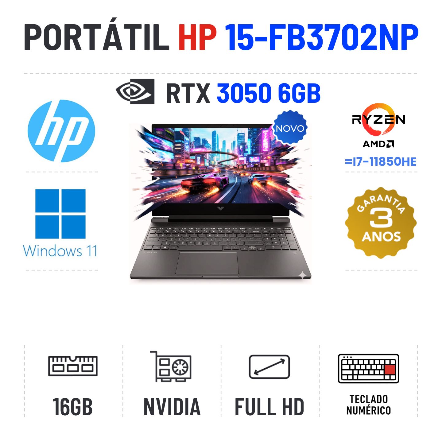 VICTUS BY HP GAMING | 15.6'' FULLHD | RYZEN 5 = I7-11850HE | 16GB RAM | 480GB SSD | RTX3050 6GB | TECLADO NUMÉRICONovo com 3 Anos de Garantia