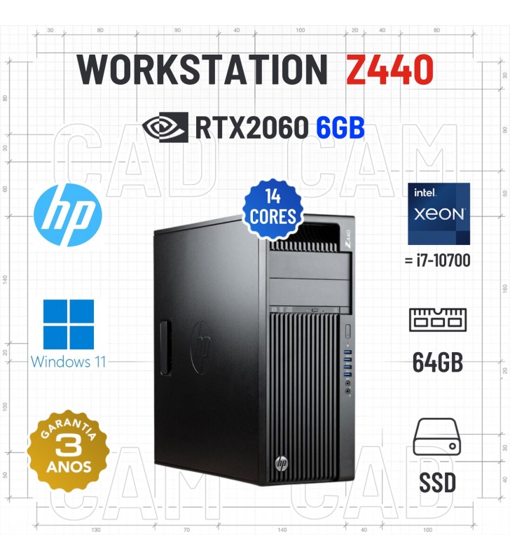 WORKSTATION 3D/CAD HP Z440 | XEON 14 CORES = i7-10700 | 64GB RAM | 480GB SSD | RTX2060-6GB | OFERTA DE OFFICE 2021