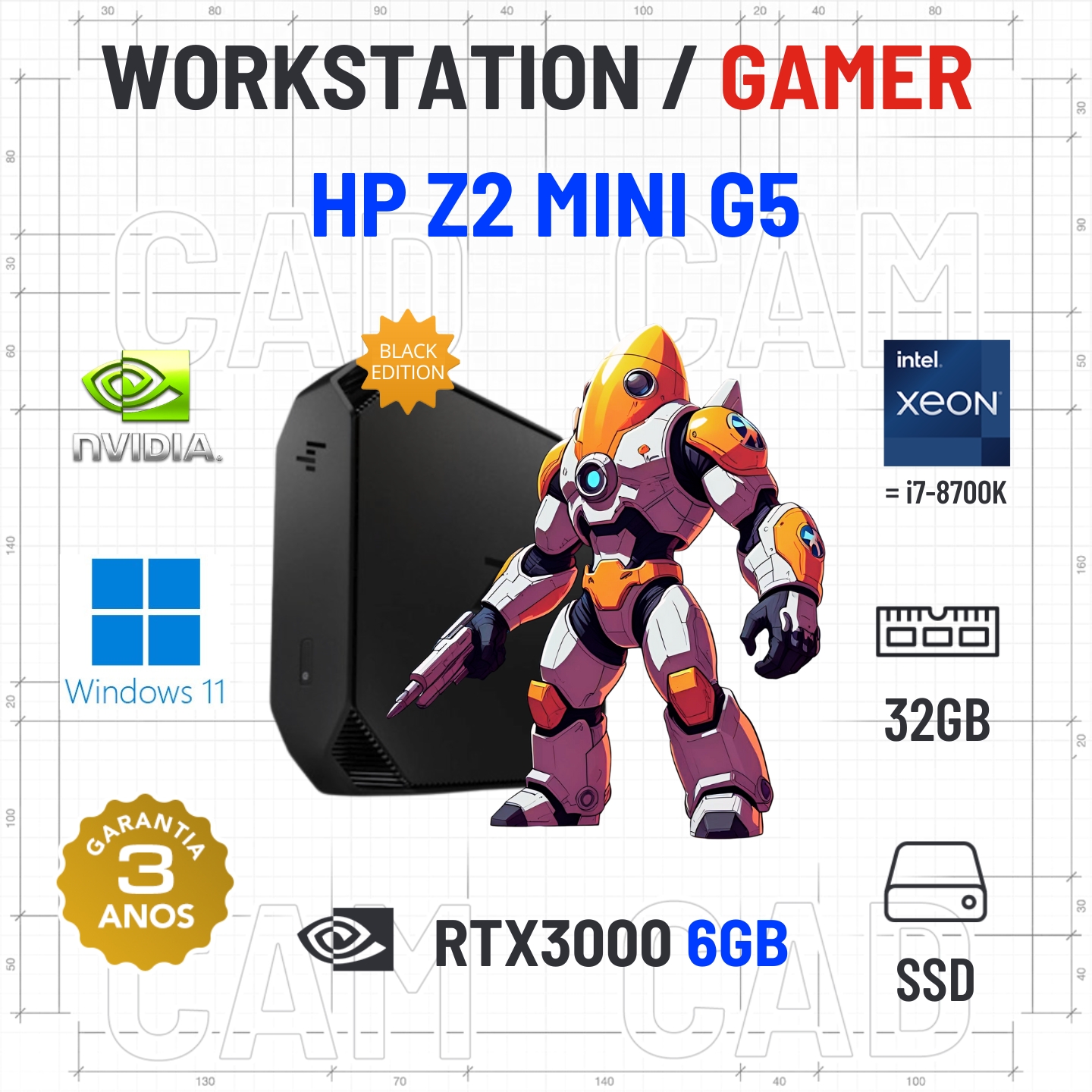 WORKSTATION/GAMER HP Z2 G5 MICRO/MINI | XEON=i7-8700K | 32GB RAM | 960GB SSD | RTX3000-6GB=RTX3050-6GBEstado Grau A. Sem qualquer tipo de danos. Somente com ligeiros indicios de uso