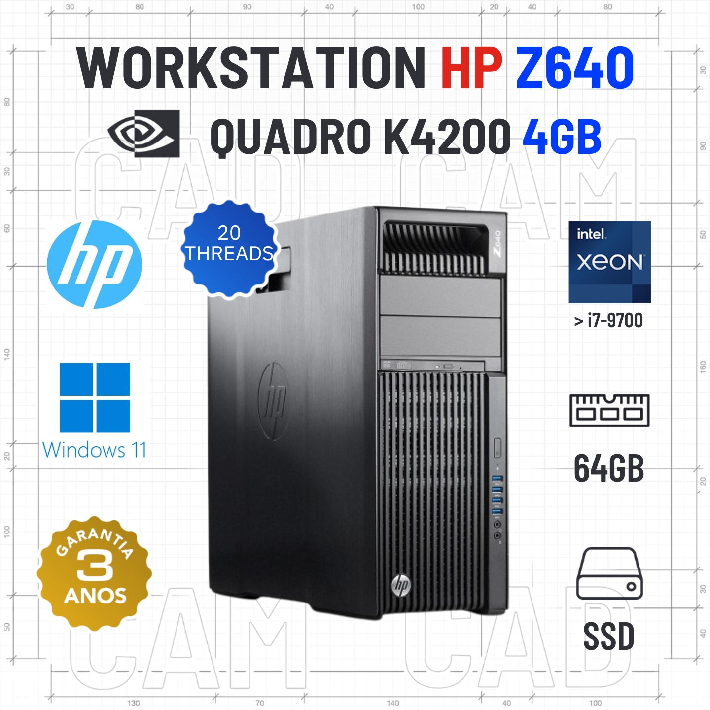 WORKSTATION HP Z640 | XEON=i7-9700 | 64GB RAM | 480GB SSD | QUADRO K4200 4GB
