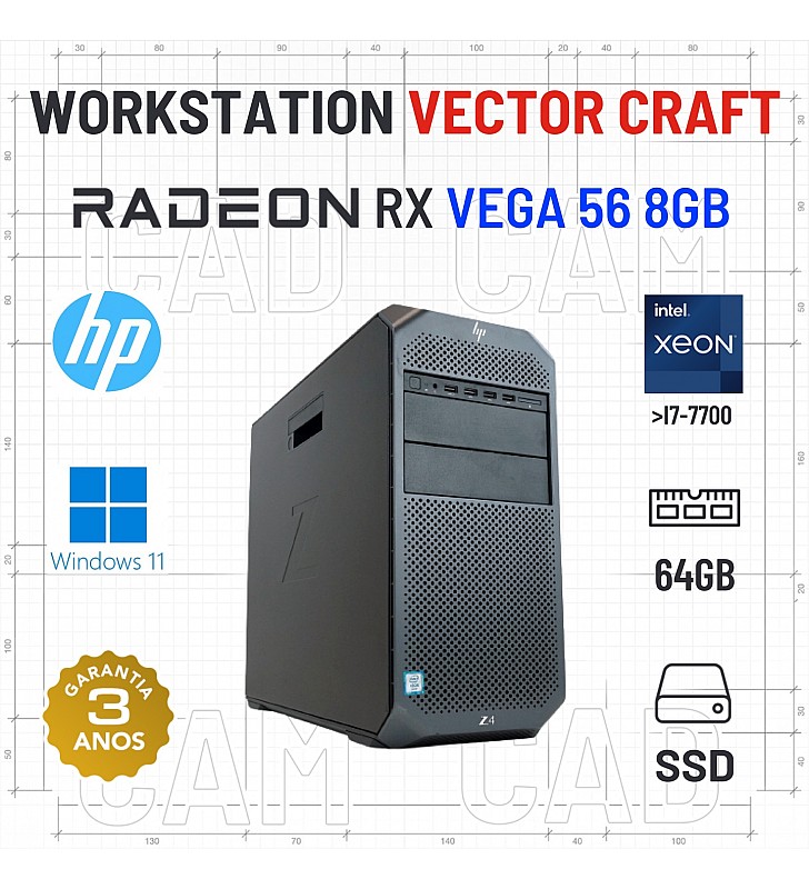 WORKSTATION VECTOR CRAFT HP Z4 G4 | XEON=I7-7700 | 64GB RAM | 480GB SSD | RX VEGA 56 8GB | OFERTA DE OFFICE 2021