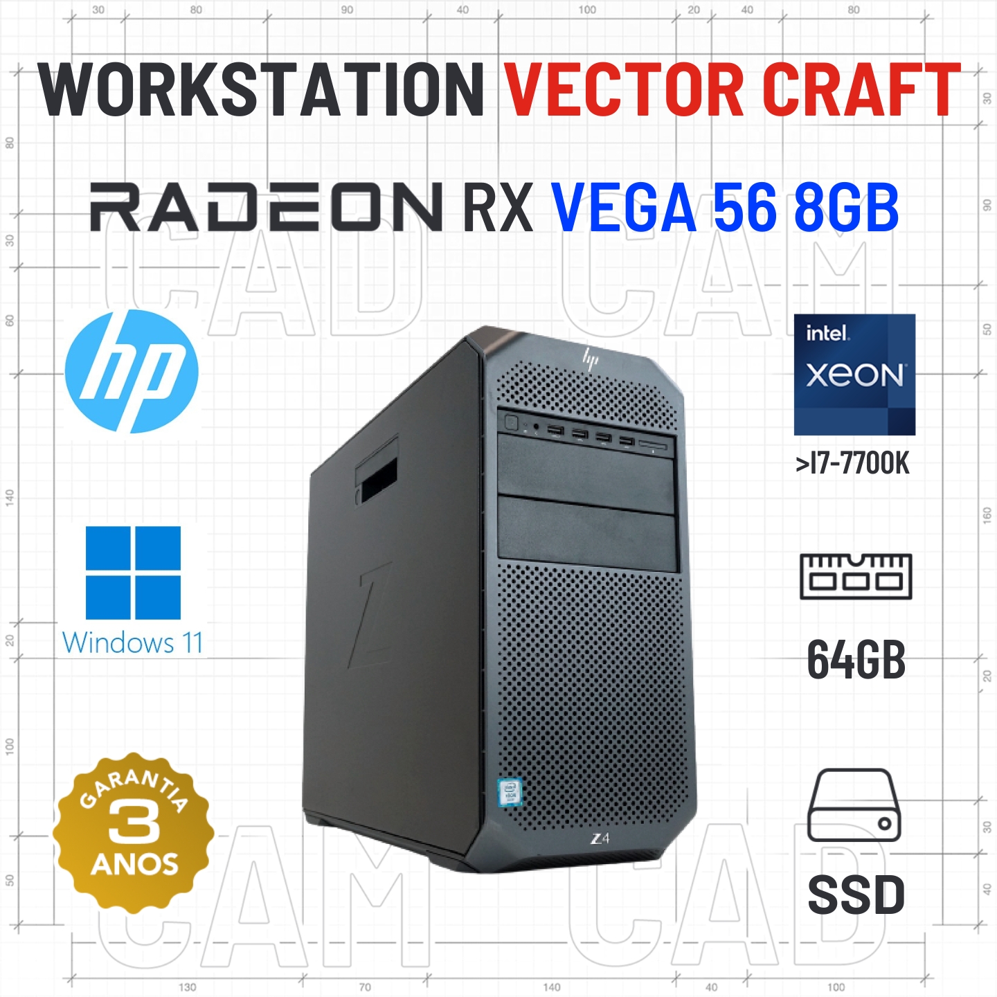 WORKSTATION VECTOR CRAFT HP Z4 G4 | XEON=I7-7700K | 64GB RAM | 480GB SSD | RX VEGA 56 8GBEstado Grau A. Sem qualquer tipo de danos. Somente com ligeiros indicios de uso