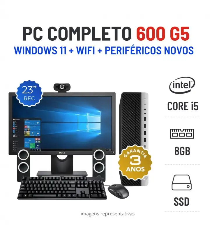 CONJUNTO HP 600 G5 SFF | i5-8600 | 8GB RAM | 240GB SSD COM MONITOR + ACESSORIOS