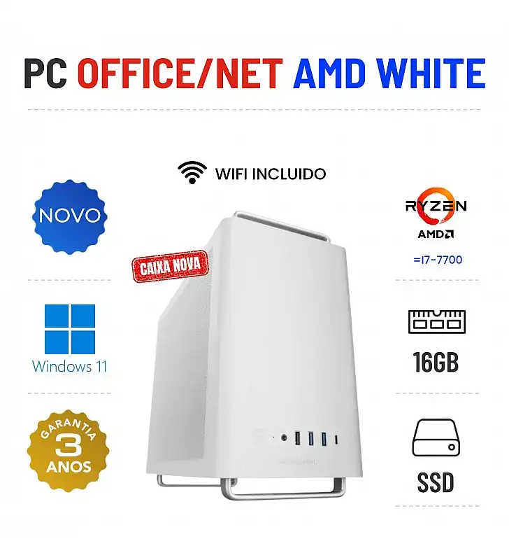 PC NOVO OFFICE/NET WHITE EDITION | RYZEN 5 = i7-7700 | 16GB RAM | 240GB SSD | OFERTA DE OFFICE