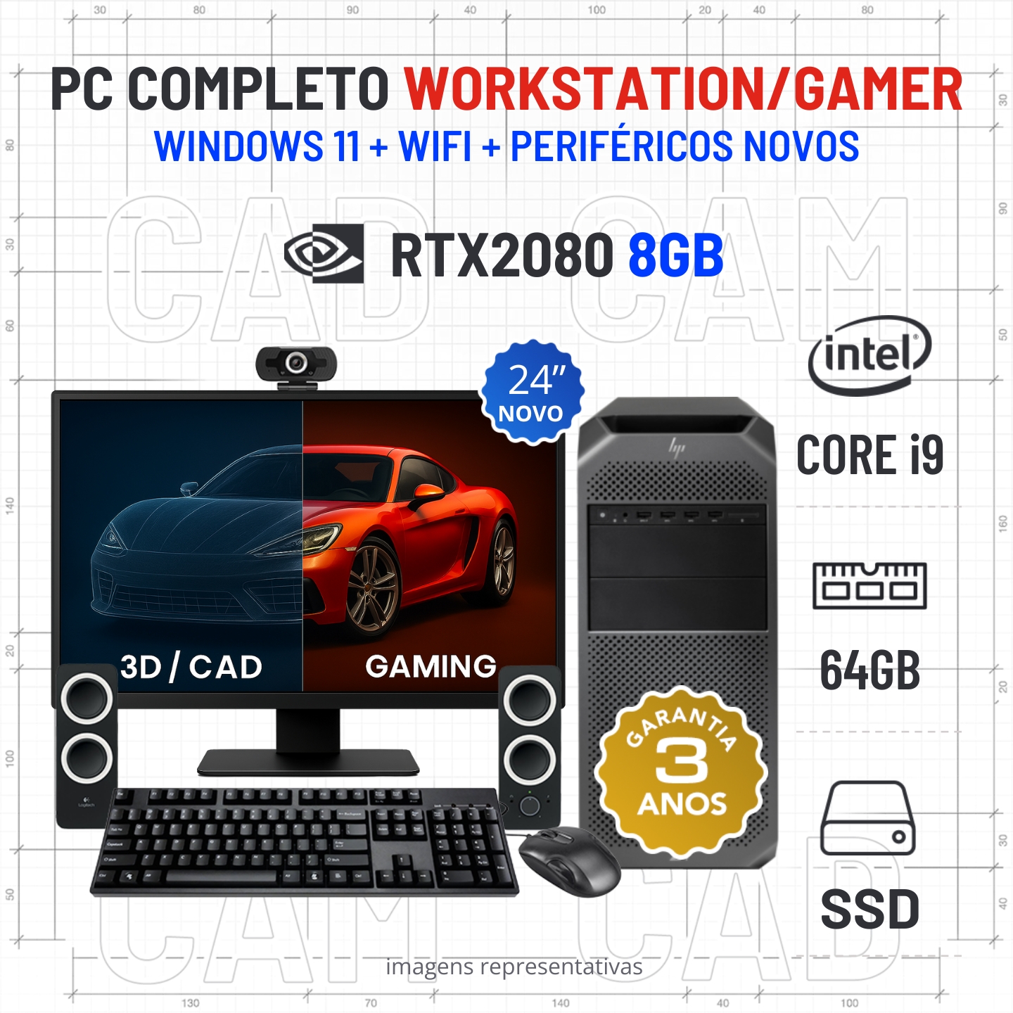 CONJUNTO WORKSTATION/GAMER BLUEPRINT X HP Z4 G4 | i9-7960X SUPERIOR A i9-11900K | 64GB RAM | 960GB SSD | RTX2080-8GB COM MONITOR + ACESSORIOS