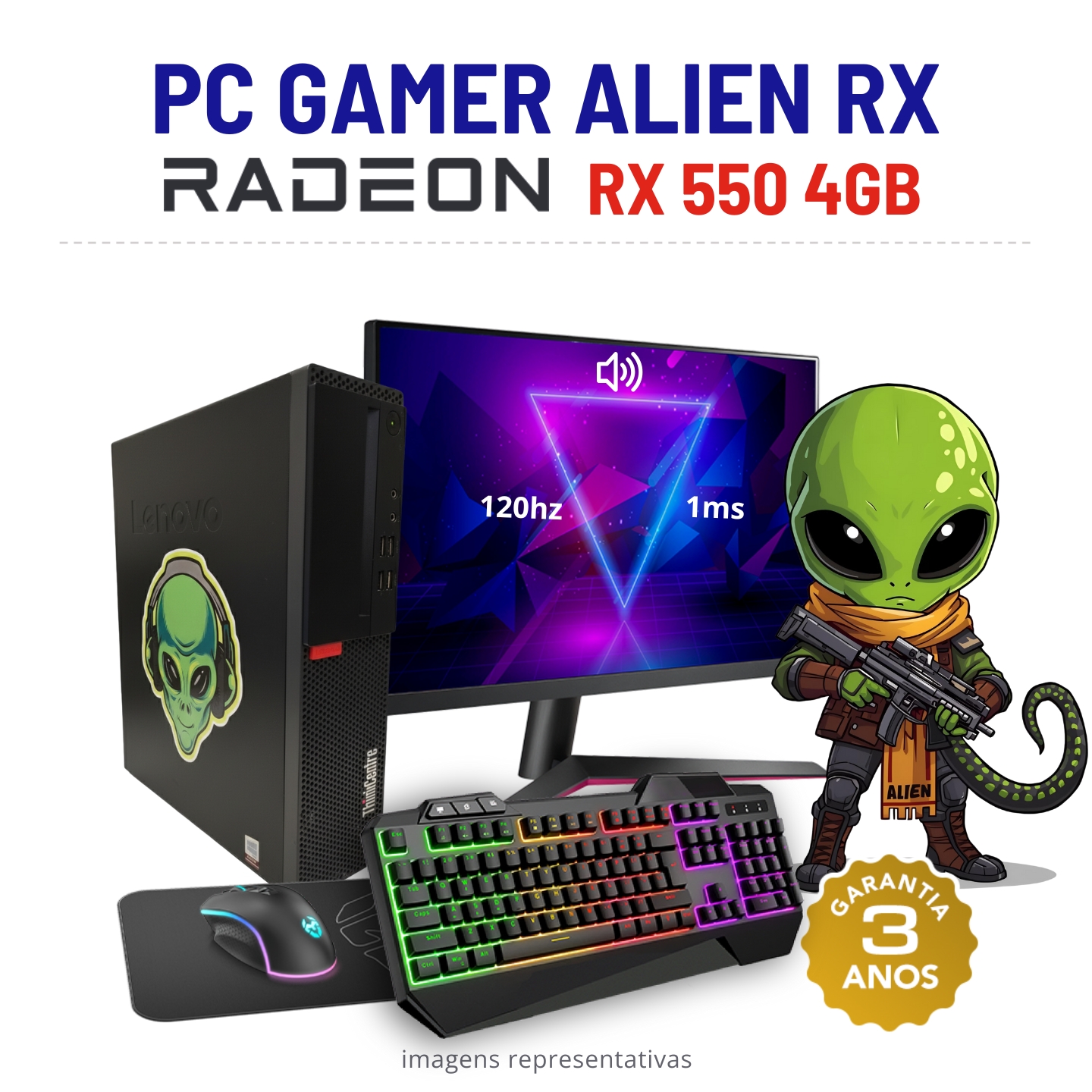 CONJUNTO GAMER ALIEN RX | RX550-4GB | RYZEN 5 PRO=I7-7700 | 16GB RAM | 240GB SSD COM MONITOR + ACESSORIOS
