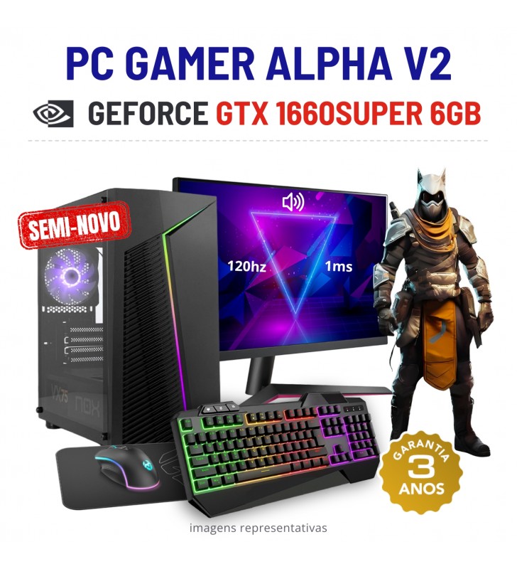 CONJUNTO GAMER ALPHA V2 SEMI-NOVO | GTX1660SUPER-6GB=RTX3050-8GB | RYZEN 3 = i7-7700K | 16GB RAM | 480GB SSD COM MONITOR + ACESSORIOSSemiNovo - Em estado fisico Como Novo. Poderá ter um componente recondicionado. 3 anos de garantia