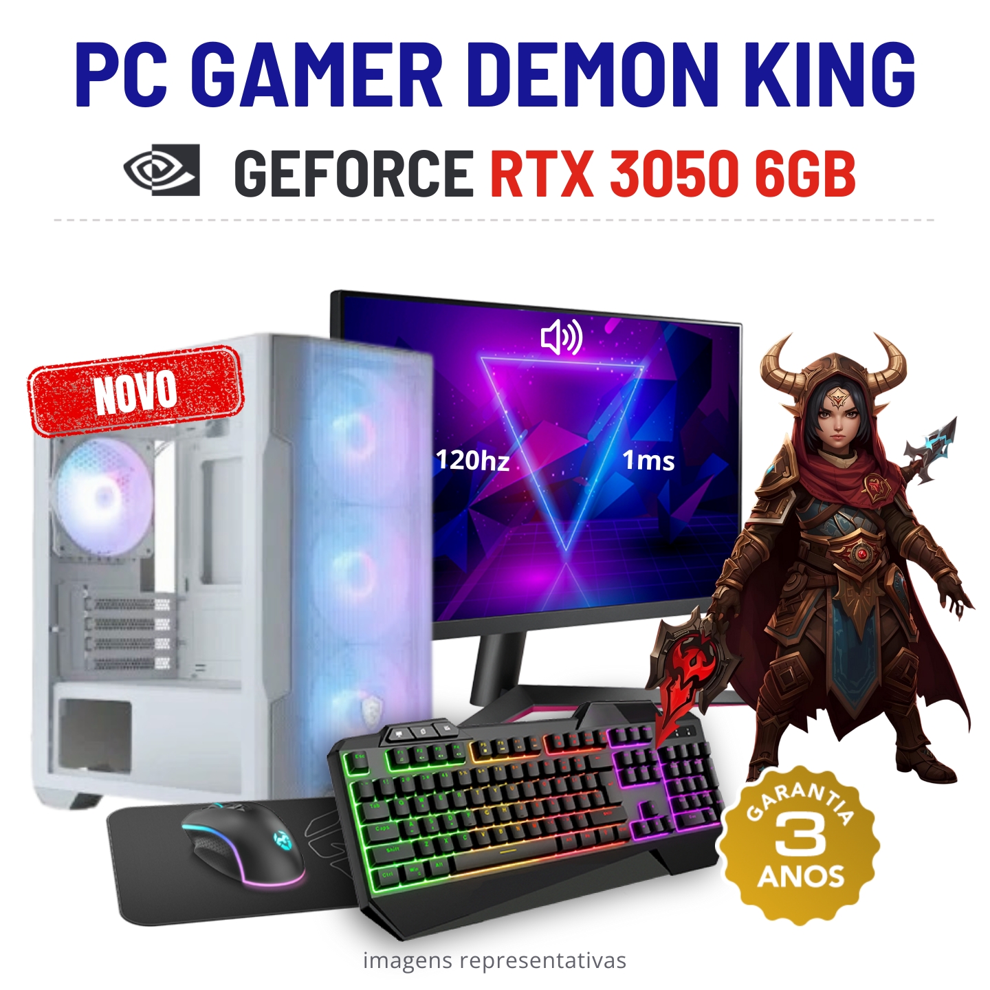 CONJUNTO GAMER DEMON KING NOVO | RTX3050-6GB | RYZEN 5 = i7-10700F | 16GB RAM | 480GB SSD COM MONITOR + ACESSORIOSNovo com 3 Anos de Garantia