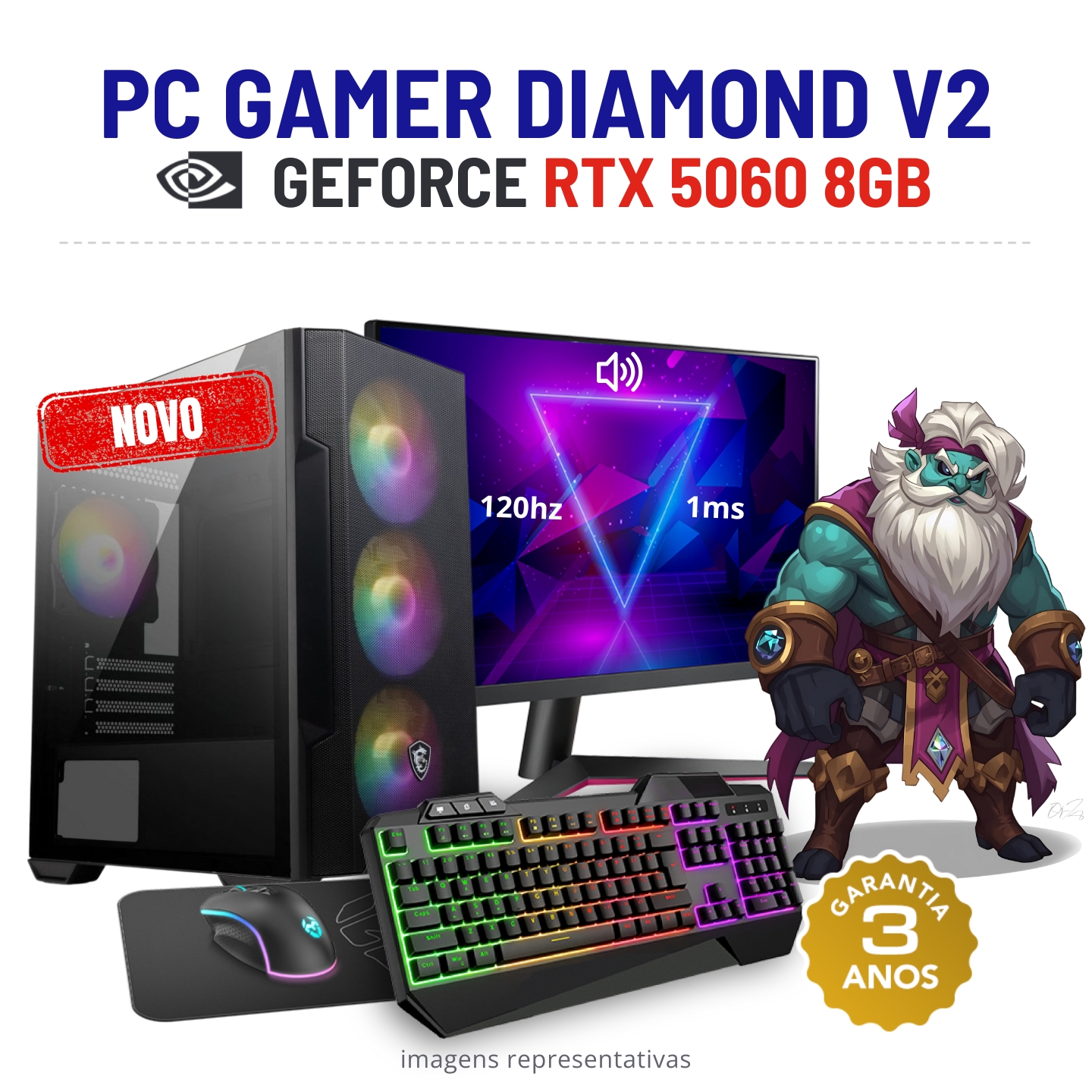 CONJUNTO GAMER DIAMOND V2 NOVO | RTX5060-8GB | i7-12700KF | 32GB RAM | 960GB SSD COM MONITOR + ACESSORIOS