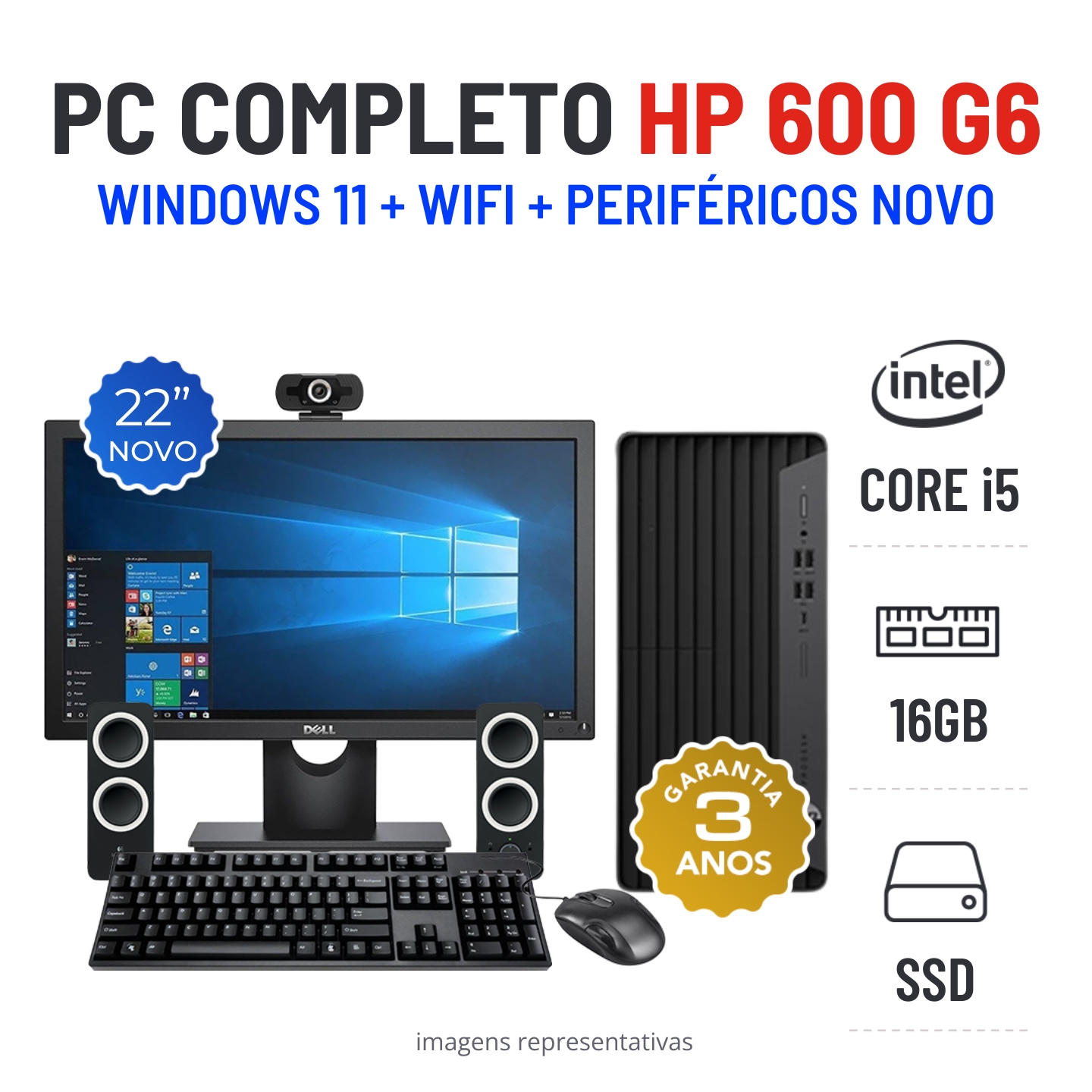 CONJUNTO HP 600 G6 TOWER | i5-10400F | 16GB RAM | 240GB SSD COM MONITOR + ACESSORIOS