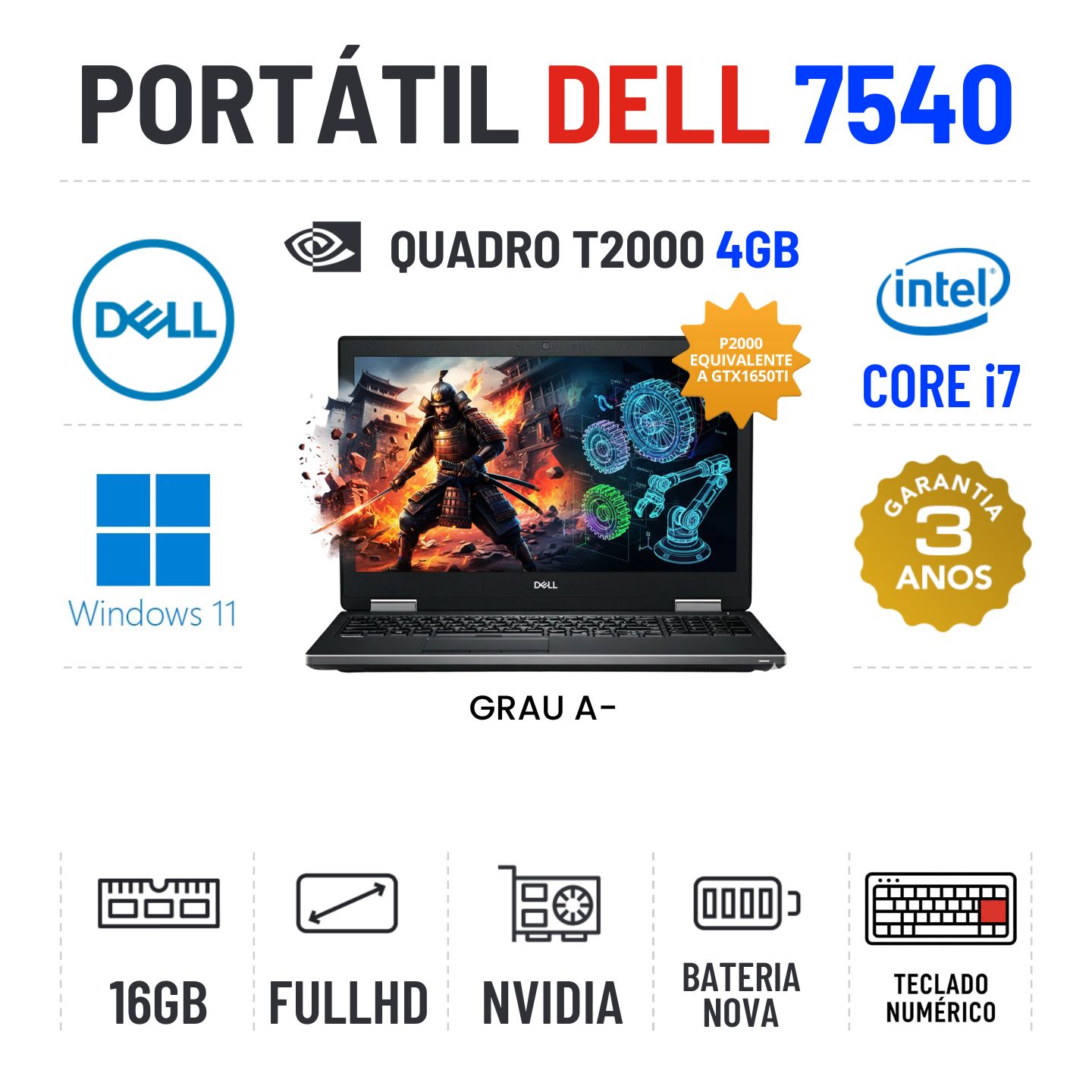DELL PRECISION 7540 | 15.6" FULLHD | I7-9750H | 16GB RAM | 480GB SSD | QUADRO T2000 4GB = GTX1650TI | BATERIA NOVAGrau A menos - Apontamentos estéticos ligeiros - 100% funcional