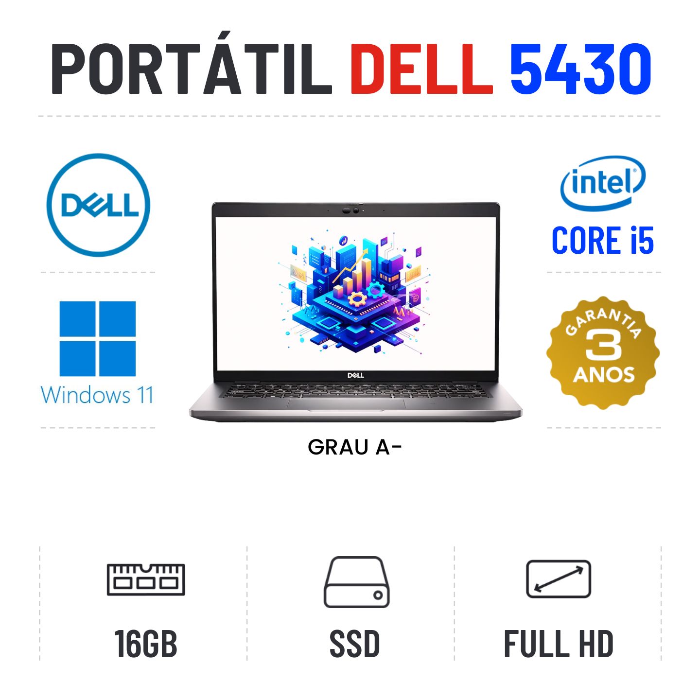 DELL LATITUDE 5430 | 14" FULLHD | i5-1235U | 16GB RAM | 240GB SSDGrau A menos - Apontamentos estéticos ligeiros - 100% funcional