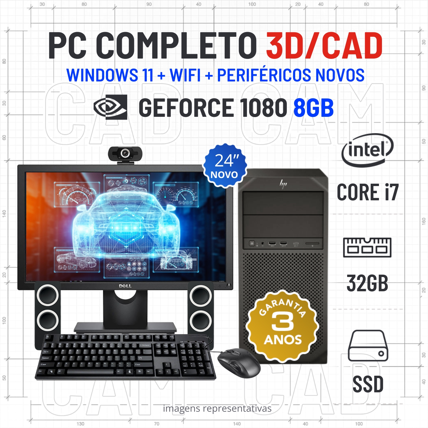 CONJUNTO 3D/CAD HP Z2 G4 TOWER | i7-9700 | 32GB RAM | 480GB SSD | GTX1080-8GB COM MONITOR + ACESSORIOSEstado Grau A. Sem qualquer tipo de danos. Somente com ligeiros indicios de uso