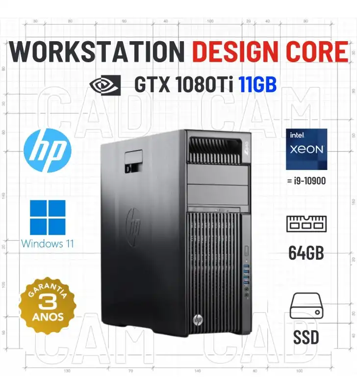 WORKSTATION DESIGN CORE HP Z640 | XEON 14 CORES = i9-10900 | 64GB RAM | 480GB SSD | GTX1080Ti-11GB | OFERTA DE OFFICE 2021
