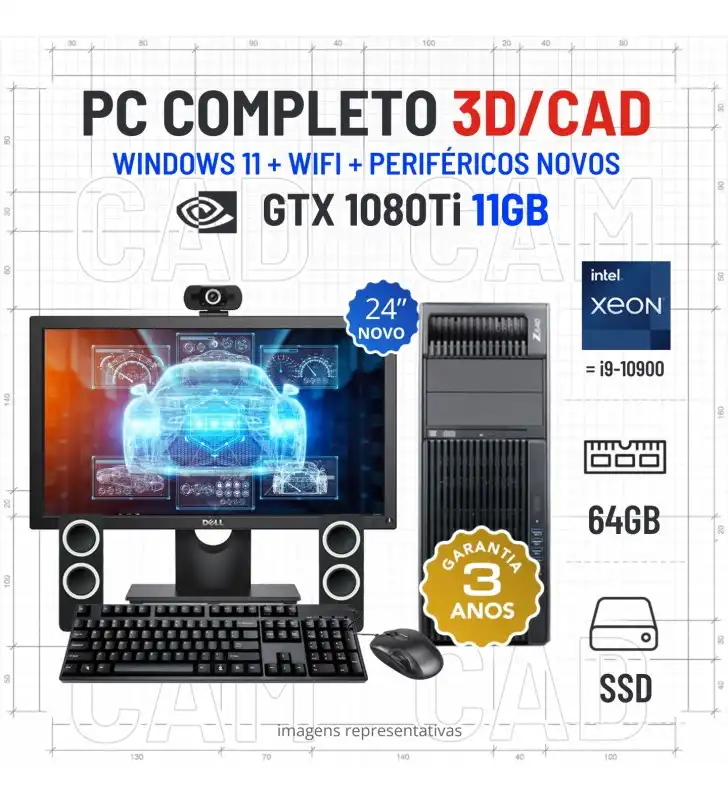 CONJUNTO 3D/CAD DESIGN CORE HP Z640 | XEON 14 CORES = i9-10900 | 64GB RAM | 480GB SSD | GTX1080Ti-11GB COM MONITOR + ACESSORIOS
