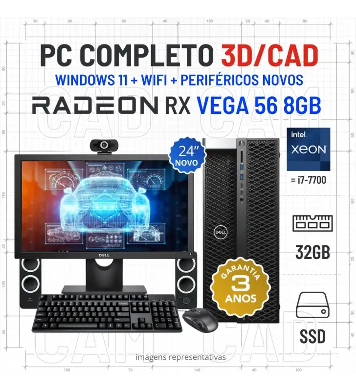 CONJUNTO WORKSTATION SHAPE CRAFT | XEON=I7-7700 | 32GB RAM | 480GB | RX VEGA 56 8GB COM MONITOR + ACESSORIOS