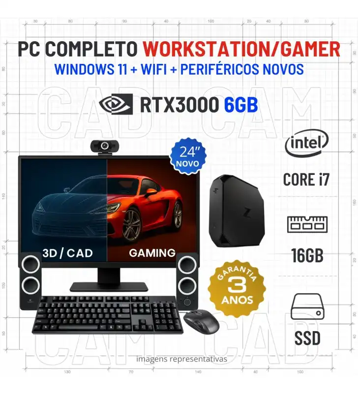 CONJUNTO WORKSTATION/GAMER HP Z2 G5 MICRO/MINI | i7-10700K | 16GB RAM | 480GB SSD | RTX3000-6GB=RTX3050-6GB COM MONITOR + ACESSORIOSEstado Grau A. Funciona como Novo. Recondicionado sem qualquer tipo de danos. Somente com ligeiros indicios de uso