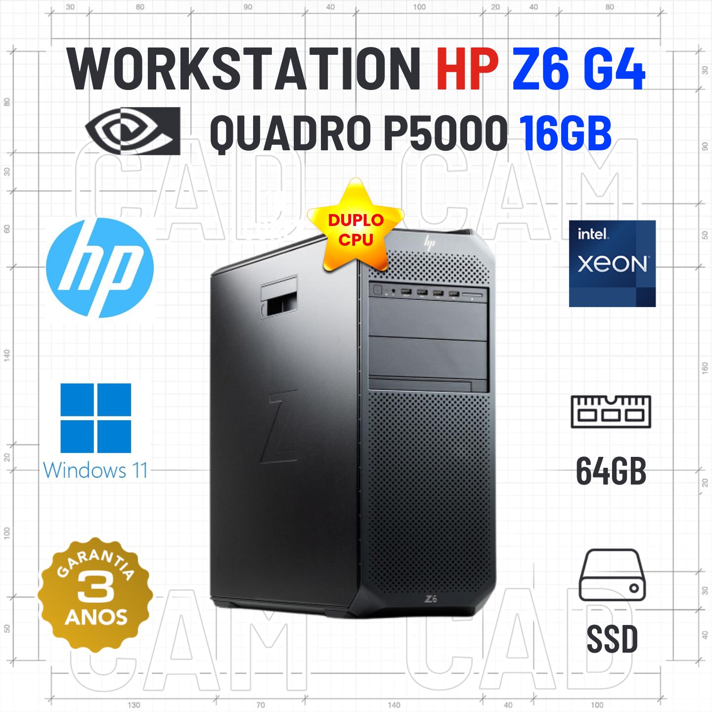 WORKSTATION HP Z6 G4 | DUPLO XEON SILVER | 64GB RAM | 480GB SSD | QUADRO P5000-16GBEstado Grau A. Sem qualquer tipo de danos. Somente com ligeiros indicios de uso